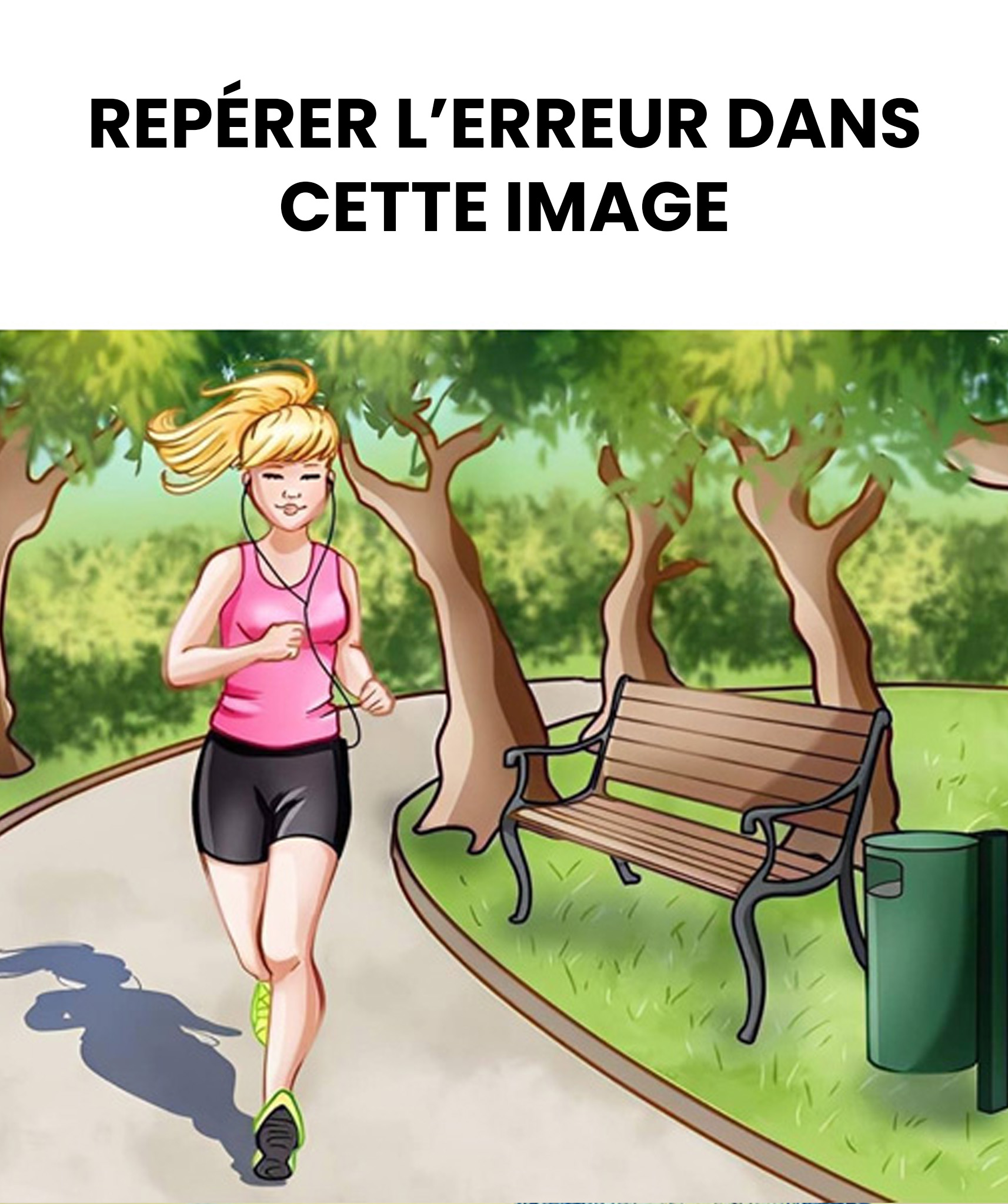 Une joggeuse s'entraîne dans un parc ensoleillé, mais un élément discordant perturbe cette image trop lisse. Les plus observateurs d'entre vous parviendront-ils à identifier ce détail incongru en moins de cinq secondes ?