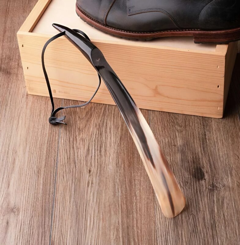 L’histoire du chausse-pied remonte au XVe siècle. À l’époque, on le fabriquait avec les matériaux disponibles : cornes d’animaux, os, bois durs. Pas de fantaisie, mais du bon sens : il fallait un outil robuste, lisse et facile à insérer entre le pied et la chaussure.