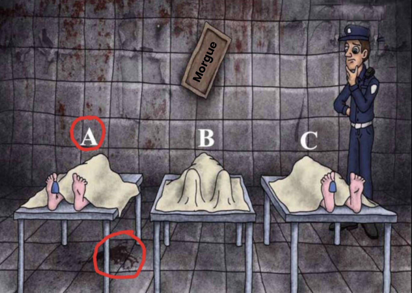 Vous êtes prêt pour la révélation ? C’est l’individu A qui est toujours en vie. Et le secret de cette énigme se dissimule… juste sous la table.
