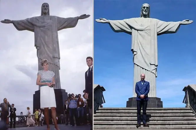 Tout a commencé lors d’une visite au célèbre Christ Rédempteur. Alors que des milliers de visiteurs profitent chaque année de ce panorama mythique, le prince William a choisi d’y faire quelque chose de très personnel : se placer exactement aux endroits où sa mère avait été photographiée dans les années 1990. Un geste silencieux, sans communication officielle, presque intime… mais dont les images ont rapidement circulé sur les réseaux sociaux.