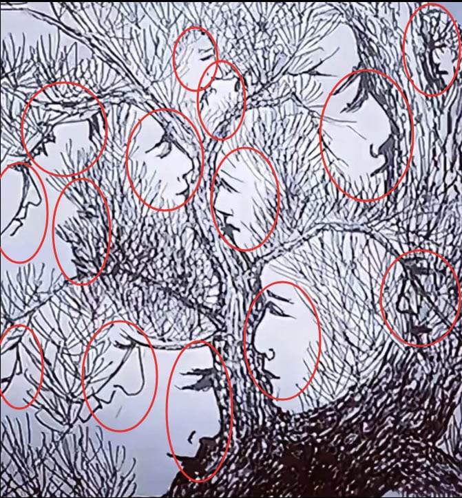 Testez votre perception : combien de visages trouverez-vous dans cet arbre énigmatique ?