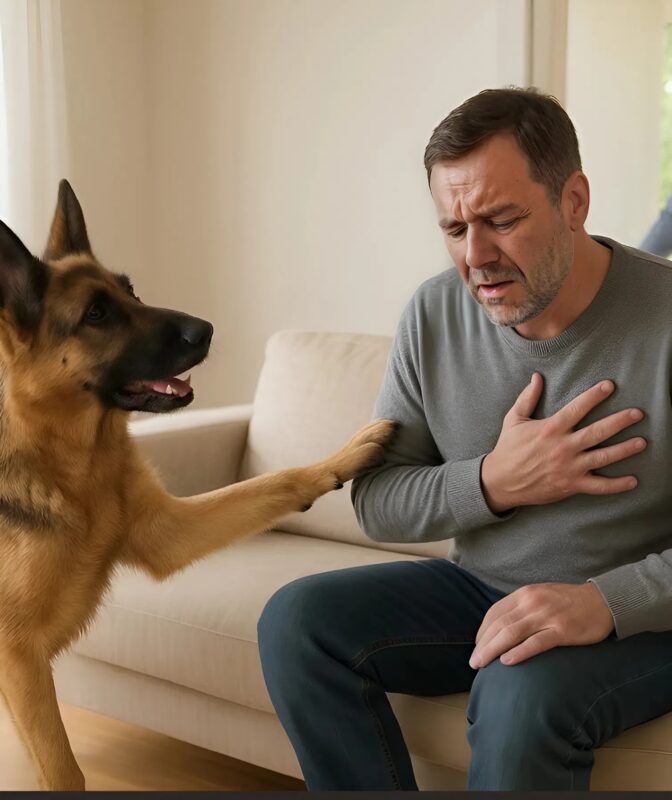 Milo, mon malinois d’ordinaire si placide, s’est brusquement redressé. Son regard s’est fixé sur moi, ses oreilles pointées, manifestement perturbé. Il s’est ensuite rapproché lentement, a déposé délicatement sa tête contre ma cuisse et a commencé à pousser ma paume avec son nez. Lorsque j’ai tenté de m’éloigner, il a saisi ma manche avec une détermination qui m’a interpellée.