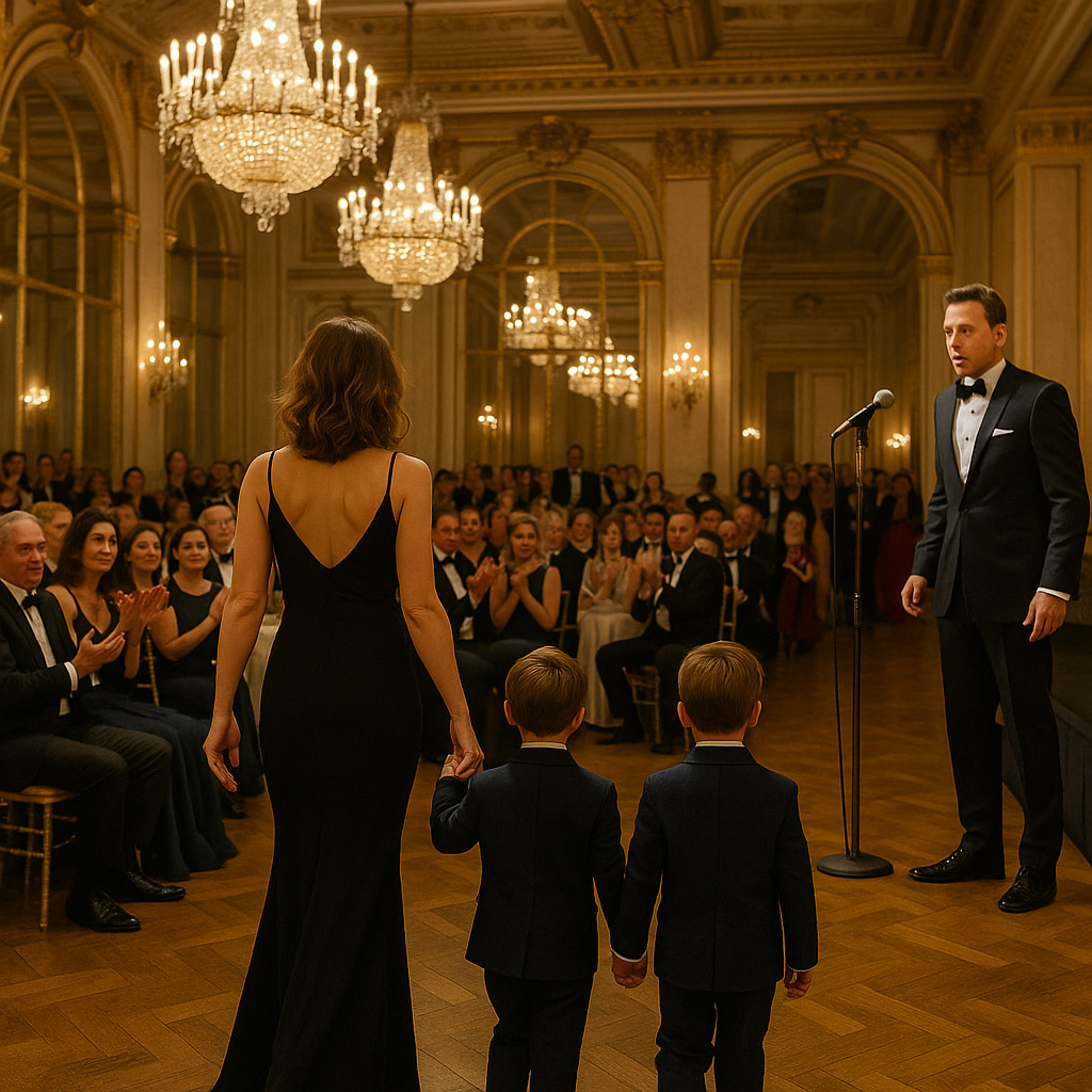 Claire fit son entrée, sobre mais rayonnante, tenant ses deux fils par la main. Aucune haine dans le regard. Juste une vérité muette.