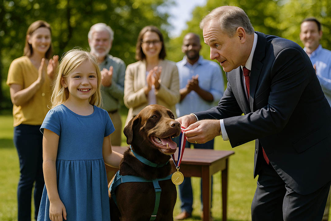 Trois semaines plus tard, le maire lui remit la médaille municipale honorant la loyauté et le courage, une distinction jamais accordée auparavant à un chien d’assistance dans notre municipalité. Emma, rayonnante de fierté, déclara devant les médias :