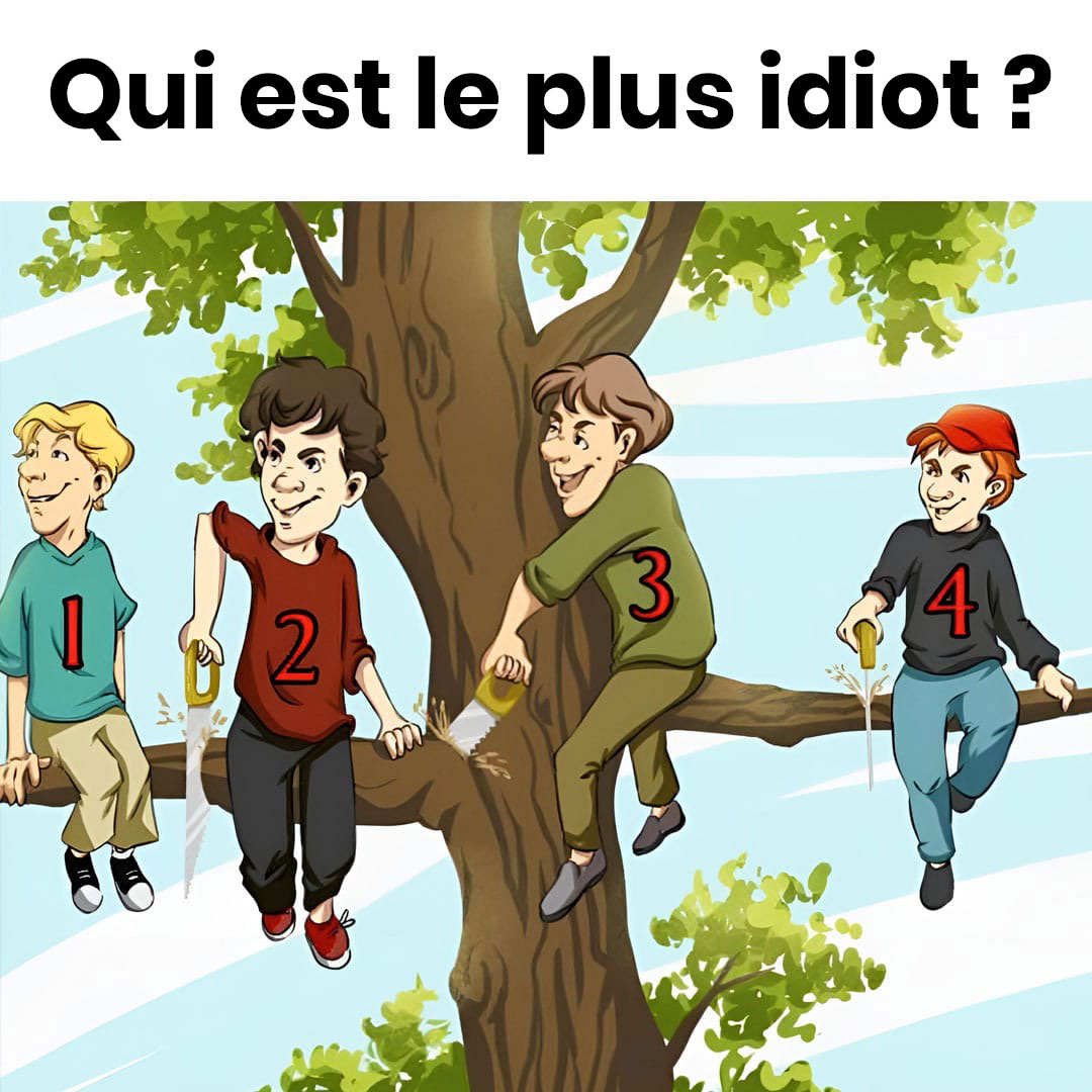 Si vous avez identifié le garçon au couvre-chef rouge (numéro 4) comme celui qui commet la plus lourde erreur, félicitations ! C’est effectivement lui qui accomplit la méprise la plus manifeste. Il scie directement le support sur lequel il est juché, ce qui le condamne irrémédiablement à dégringoler.