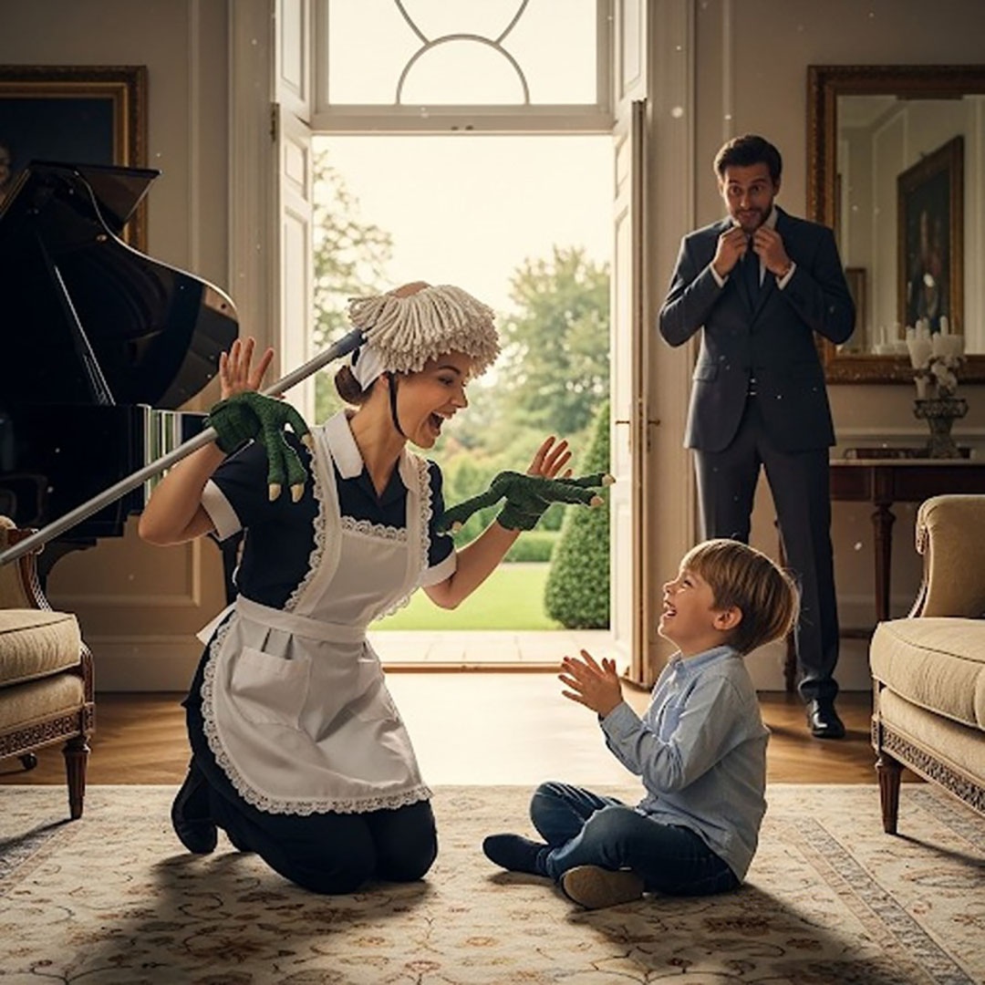 Un jour, Camille transforma le salon en terrain d’aventures extraordinaires : des coussins devinrent des montagnes escarpées, des balais se métamorphosèrent en dragons fantastiques, et des biscuits maison servirent de provisions pour survivre en territoire hostile. Léo se laissa peu à peu emporter par cette magie, retrouvant le chemin du rire et commençant à tisser des liens avec cette présence réconfortante.