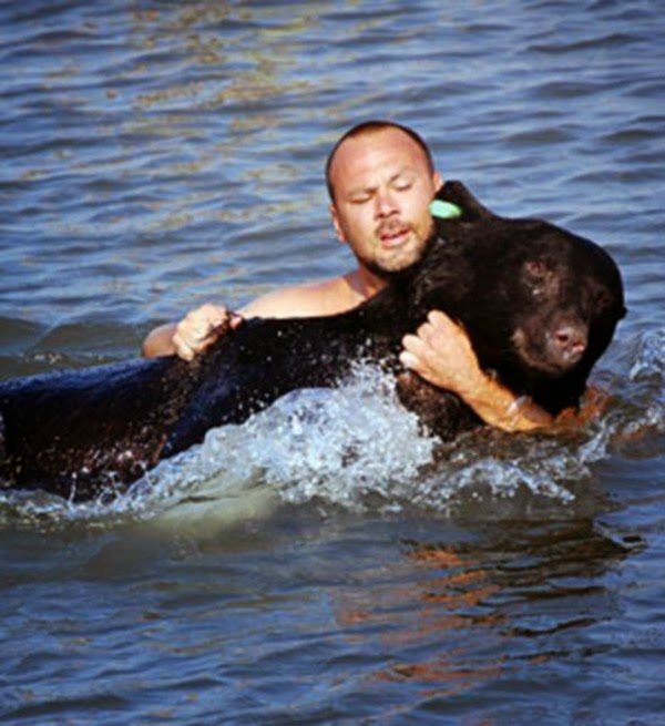 Miraculeusement, l’ours est resté calme. On aurait presque pu croire qu’il percevait l’intention bienveillante de son sauveur.