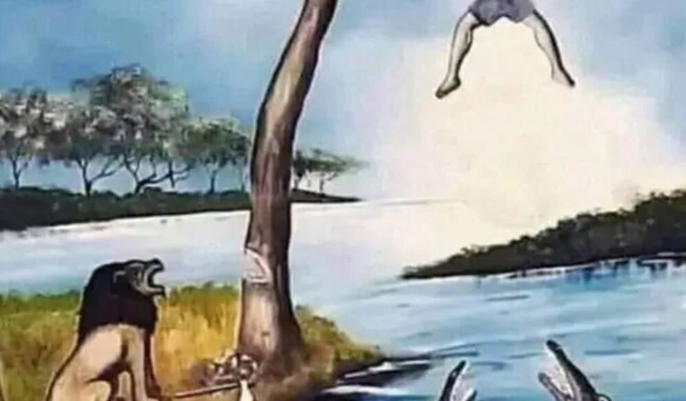 1)L’homme coincé entre serpent, arbre, lion et crocodiles