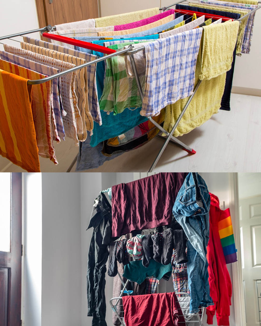 Évitez absolument d’empiler vos vêtements comme des sardines sur l’étendoir. Pour permettre une circulation d’air optimale, espacez suffisamment chaque article. Suspendez chemises et robes sur des cintres, et veillez à ne pas superposer les couches sur les fils. Une astuce supplémentaire : disposez certains vêtements à plat ou légèrement penchés pour favoriser l’évaporation de l’humidité.
