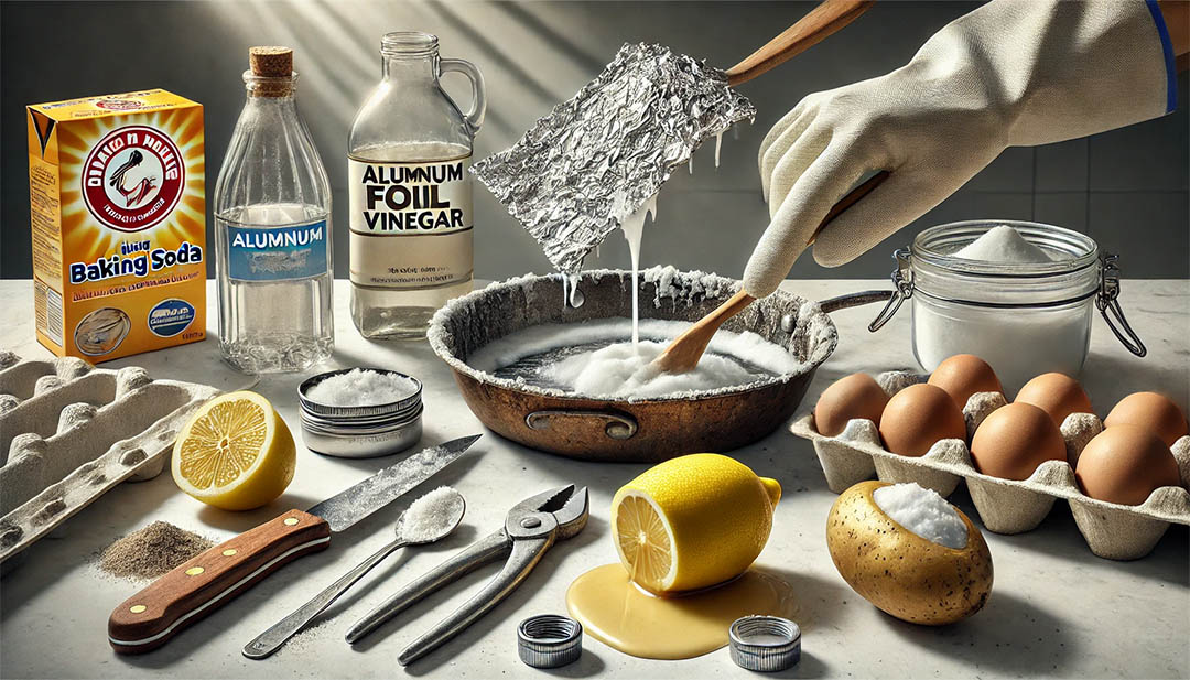 Explication scientifique : la texture souple de l’aluminium polit sans égratigner, tandis que les propriétés acides du vinaigre décomposent l’oxydation superficielle.