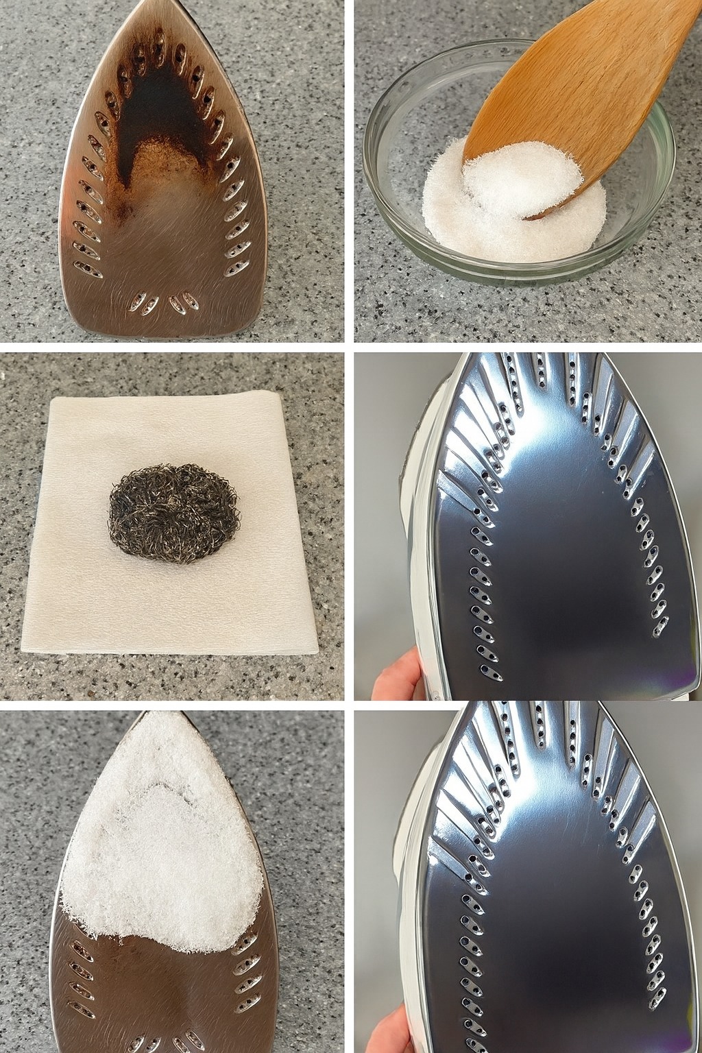 Pour les fers dotés d’une semelle en acier, l’association du **sel fin** et du **papier sulfurisé** fait des merveilles. Cette technique est à la fois simple et remarquablement performante.