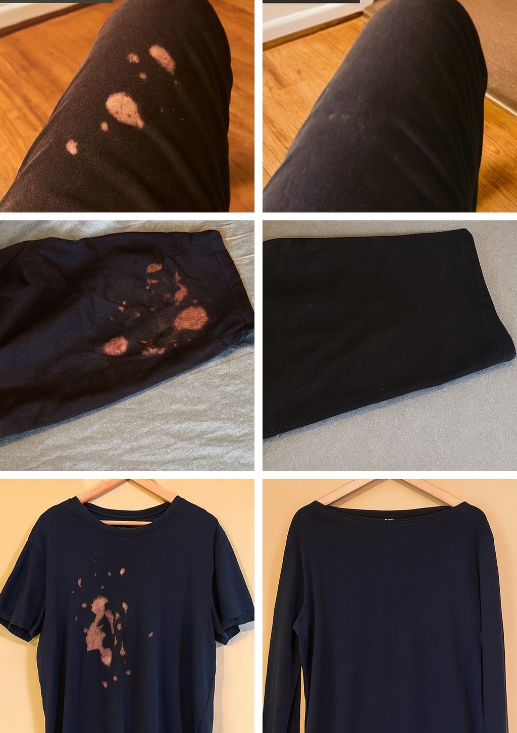 Soyons réalistes : une décoloration due à l’eau de Javel est généralement définitive. Ces techniques aident à neutraliser le produit et à contenir l’étendue des dégâts, mais elles ne rendront pas sa couleur initiale au tissu. En revanche, plusieurs options s’offrent à vous :