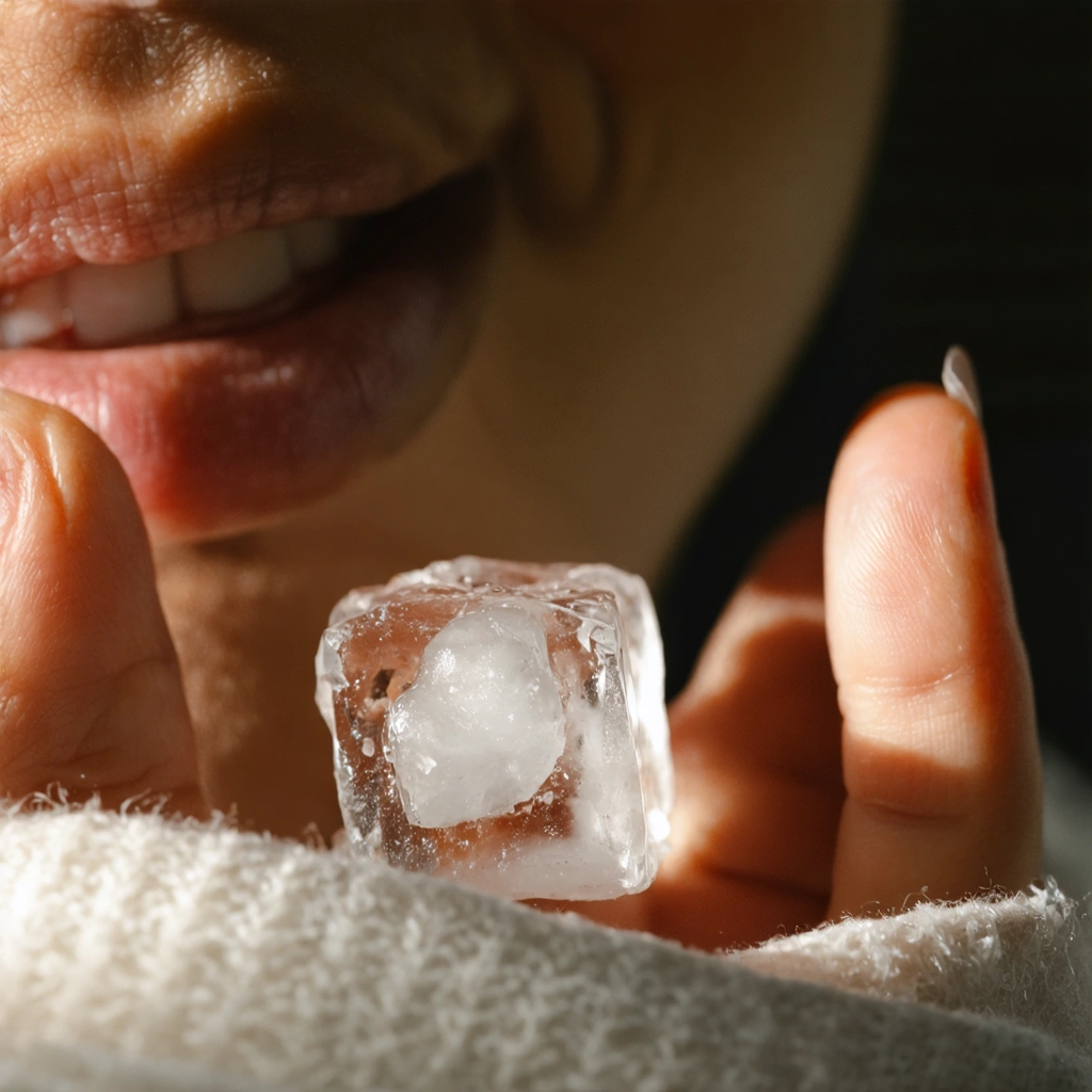 D’une simplicité désarmante, cette technique ne nécessite **qu’un simple glaçon**. Le froid procure un effet anesthésiant quasi immédiat et **permet de réduire visiblement l’inflammation en quelques minutes**.