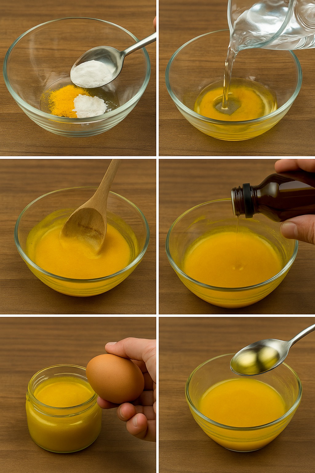 - Incorporez ensuite une cuillère à soupe d’huile d’aloe vera, un jaune d’œuf et une cuillère à soupe d’huile de lin. Mélangez soigneusement jusqu’à complète intégration des ingrédients.
