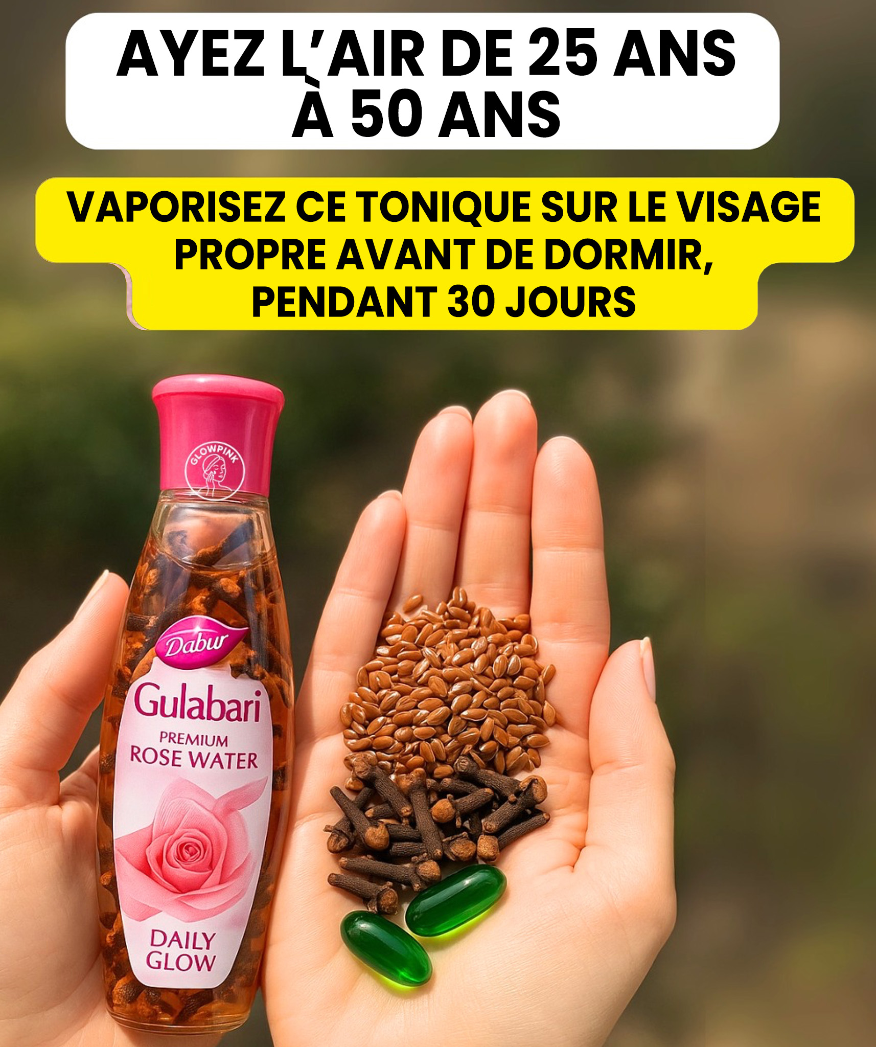 Lotion tonique à l’eau de rose, aux clous de girofle et aux graines de lin pour la peau