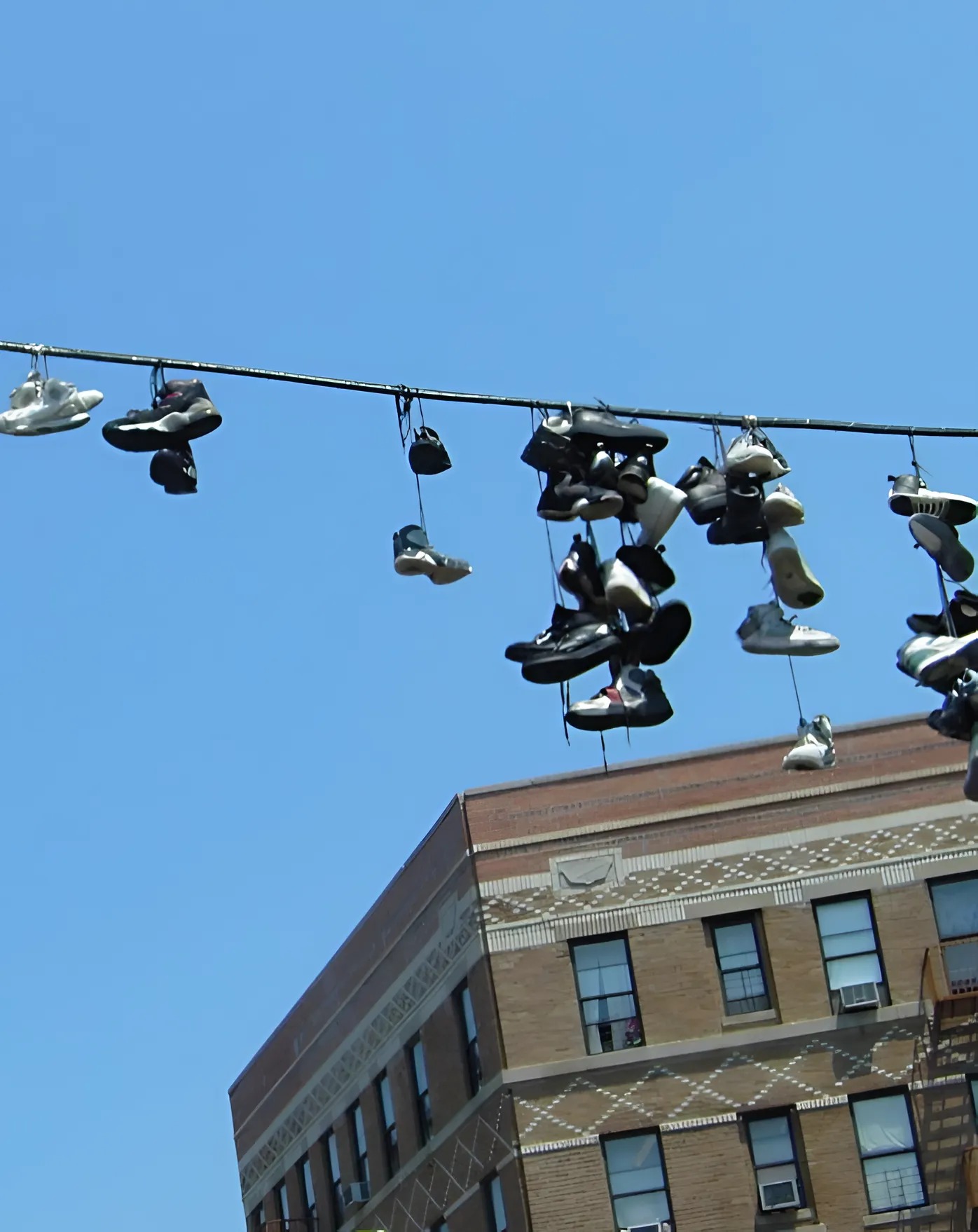 Ces baskets suspendues aux fils électriques cachent un secret insoupçonné