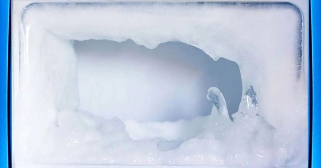 Congélateur recouvert de givre épais